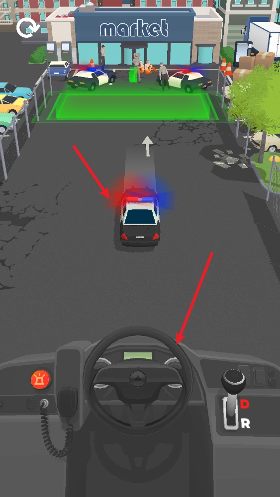 進(jìn)入游戲后,我們長按方向盤即可控制車輛移動。