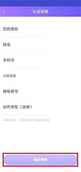 輸入個人基本信息,小區(qū)房號,點擊提交審核,