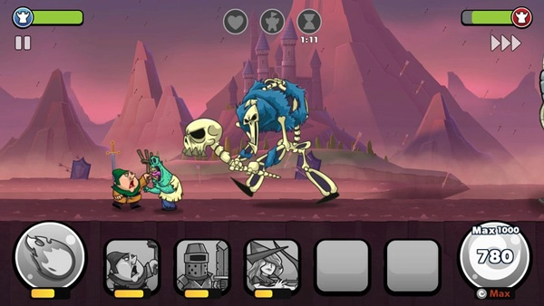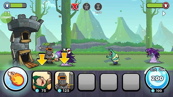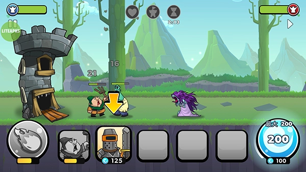 請不要把游戲速度調到最快,最好保持在2檔或者3檔。游戲速度太快的話,很容易讓玩家的節奏被打亂,進而導致隨意釋放小兵的情況出現。雖然前期的關卡相對簡單,但要是養成了這種不好的習慣,會對后面關卡的發揮產生負面影響。就拿第二關來說,敵方有可能同時派出遠程和近戰兩種單位,這些單位不僅攻擊力更強,生成速度也更快,通關的難度會一下子變大。所以,正確的做法應該是先派一個小兵去拖延時間,與此同時升級用來制造小兵的能量條,之后再慢慢釋放小兵,并且在合適的時機使用火球技能。