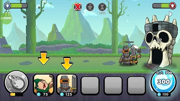 當軍隊實力足夠強勁時,向右滑動屏幕靠近敵方塔樓,將其摧毀就能取得勝利。