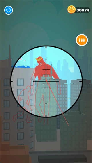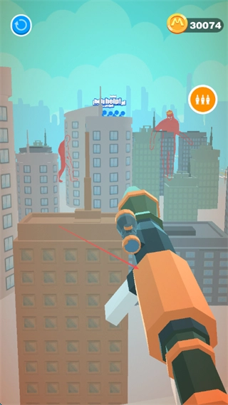 操控槍械對準城市里的紅色巨人,找到它的弱點所在,做好射擊準備。