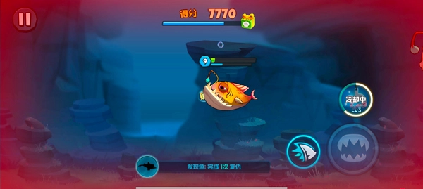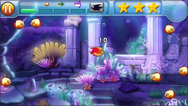 要是遇到其他大魚,就會(huì)損失生命值,一旦生命值耗盡,游戲便宣告結(jié)束。
