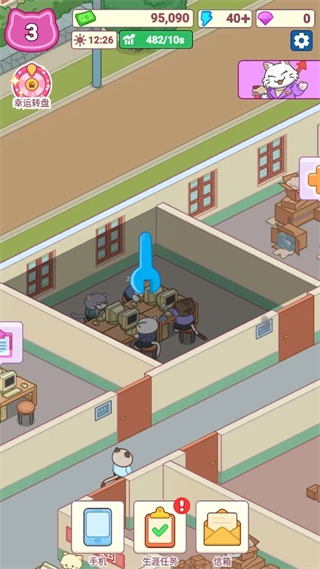 前期搭建階段:利用賽道獲取的磚塊兌換金幣,優(yōu)先解鎖1-2張辦公桌,通過招聘員工來提高生產(chǎn)能力。