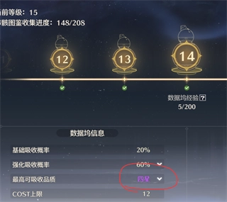 數據塢的等級由吸收的聲骸總品階決定,吸收的聲骸數量越多、品質越高,數據塢的等級就越高。