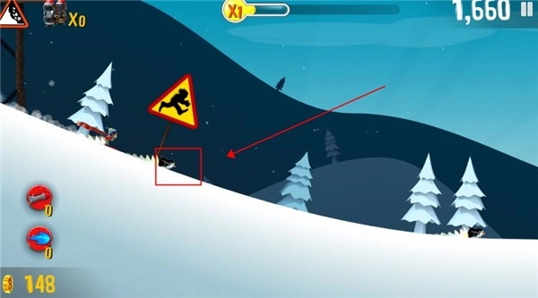 長按屏幕能觸發后空翻之類的滑雪技巧,這會讓游戲結算時的分數有所提升。