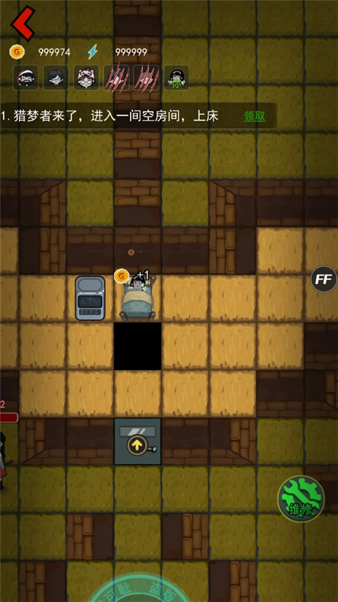 門相當于血條,床是核心資源點。每次升級門都能讓血條回滿,這一點要好好利用。另外,升級鋼門的時候一定要準備好四個游戲機,不然電量會不足。
