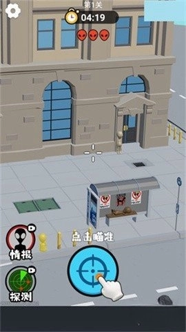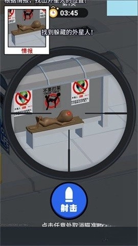 根據情報提示,找到外星人的位置并進行瞄準射擊。