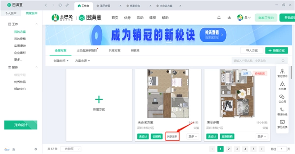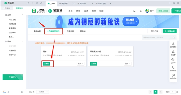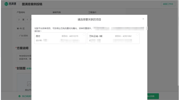 登錄公司子賬號后,進入“我的方案”界面,在土巴兔派單項目中選定對應的項目ID,即可進行創建操作。