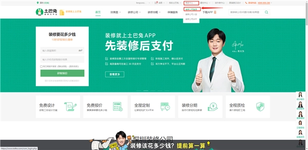 必須通過土巴兔平臺進入商家登錄界面,具體鏈接為:https://sz.to8to.com/