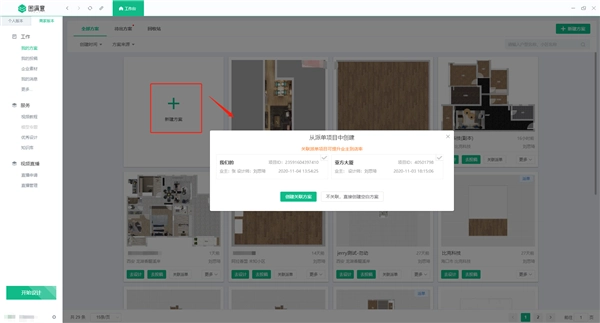 進入我的方案界面后,直接點擊新建方案,系統就會彈出項目關聯的提示。