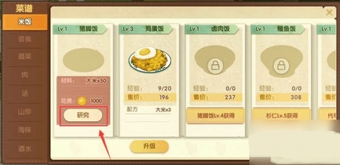解鎖菜譜后,記得點研究哦,不研究廚師是做不出來這道菜的。另外升級菜譜,可以提高菜品單價提升收入。