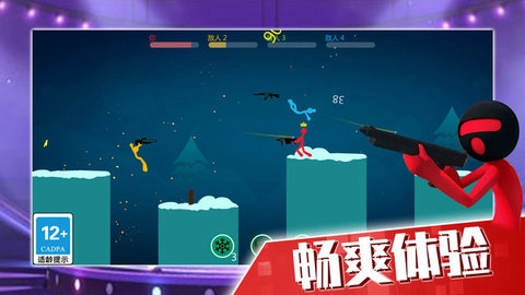 火柴人大決戰手機版是一款新穎有趣的掌上火柴人格斗游戲。這款游戲中不只是挑戰一個敵人,需要與四名玩家進行混亂的戰斗。玩家在這里可以控制火柴人的攻擊方向來抵抗或攻擊前進的敵人,并進行戰斗。也可以坐在山上看老虎戰斗,直到時機成熟,然后出來一舉消滅它們。