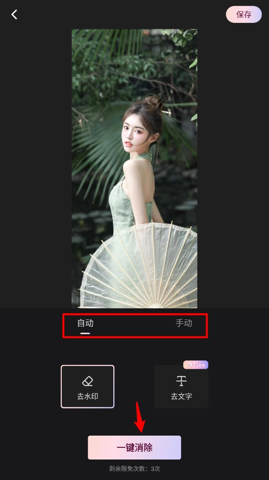 接著根據所需選擇自動,點擊"一鍵消除"。