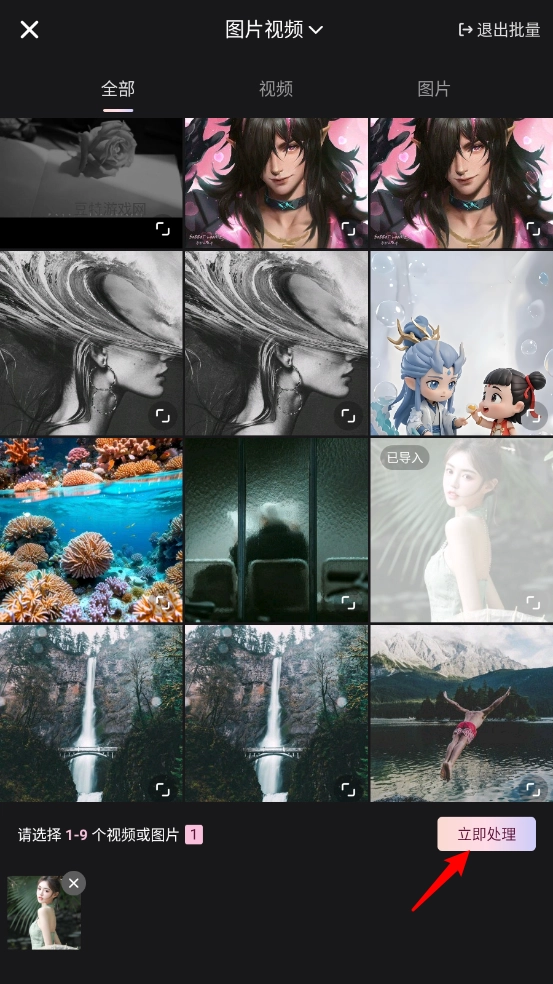 接著挑選需要去除水印的圖片或者視頻,再點擊“立即處理”按鈕。