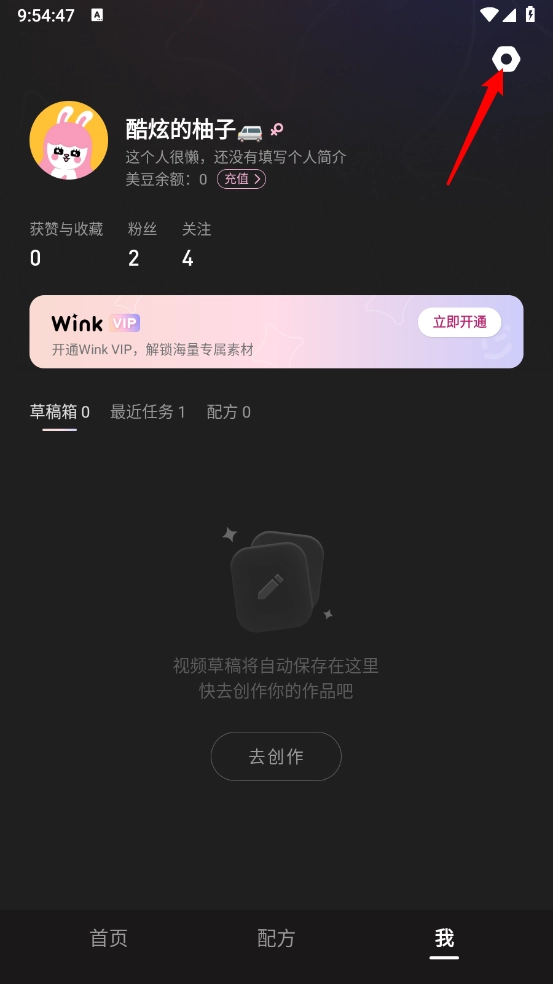 用戶在我的頁面,點擊右上角"設置"圖標。