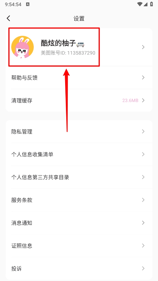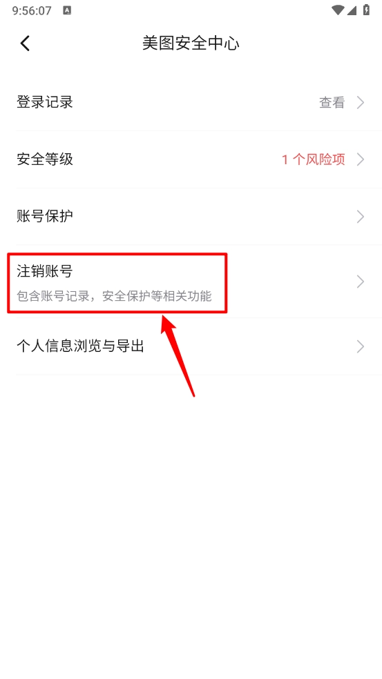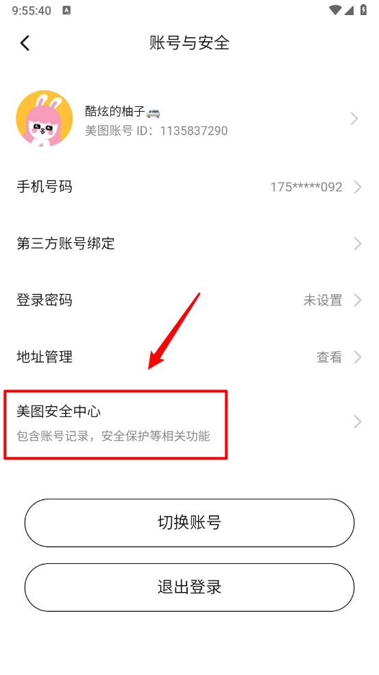 然后進入賬號與安全頁面點擊"美圖安全中心"。