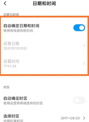 接著進(jìn)入設(shè)置界面,把“自動(dòng)確定日期和時(shí)間”的開關(guān)關(guān)掉,再對(duì)下方的時(shí)間進(jìn)行修改。