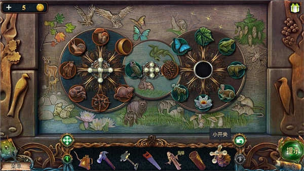回到小屋后,把小開關(guān)裝到5個(gè)設(shè)備上,接著啟動(dòng)動(dòng)物圖案匹配的小游戲,完成游戲就能得到一枚能量球。