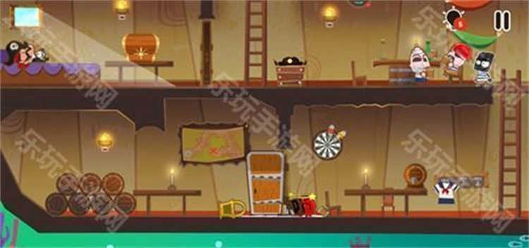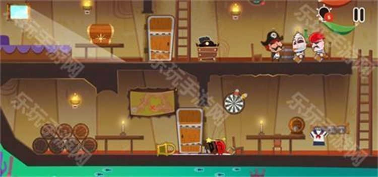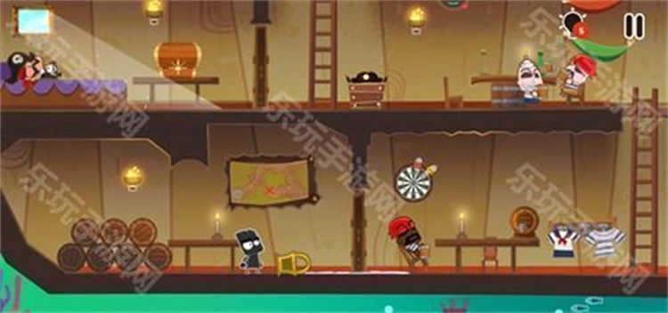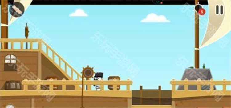 留意甲板上巡邏的海盜,等他背過身去時就快速登上甲板,點擊左側的滑輪跳上汽艇就能通關了。