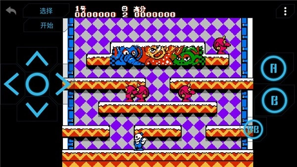 然后玩家可以選擇你想玩的一款游戲,小編這里以雪人兄弟為例,進入游戲界面后直接點擊開始選項即可;