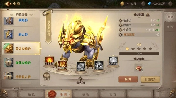 玩家還可以通過使用不同品質的坐騎口糧增加坐騎經驗,經驗值滿后坐騎將會提升星級,達到五星后再次提升則可以進行坐騎升階,升星升階可以提升坐騎基礎屬性加成,同時可以解鎖坐騎更高階的專屬技能。