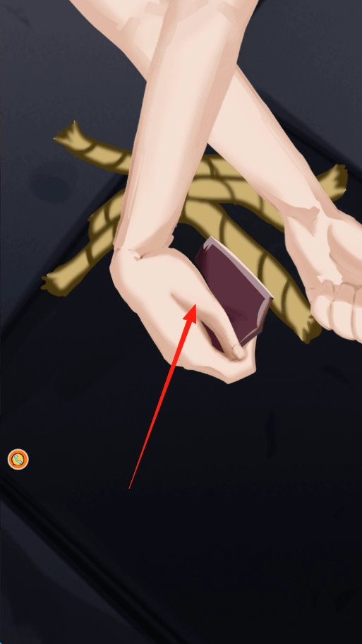 點(diǎn)擊紅箭頭指的【紫色本子】,獲取線索日記、密碼,查看內(nèi)容劇情、提示,推進(jìn)解謎,注意手部細(xì)節(jié)捆綁,女孩劇情角色。
