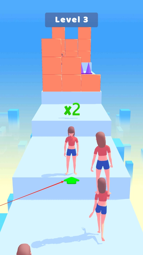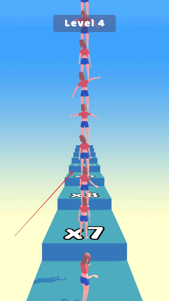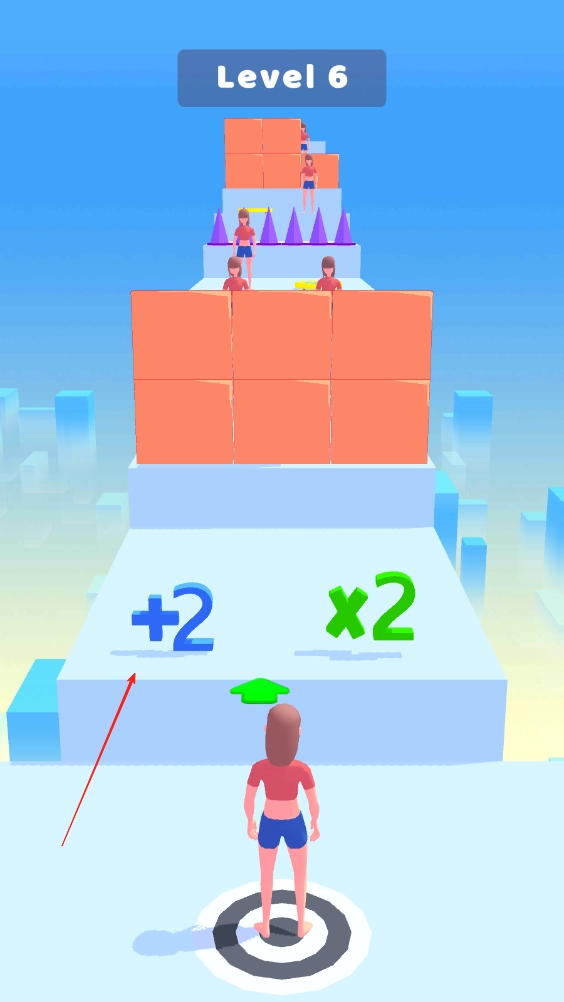 當箭頭指向能使人數變得更多的數時點擊屏幕讓小人跳躍即可,如果小人走到臺階前沒來得及選擇,就會放棄選擇,小人自行爬上階梯。