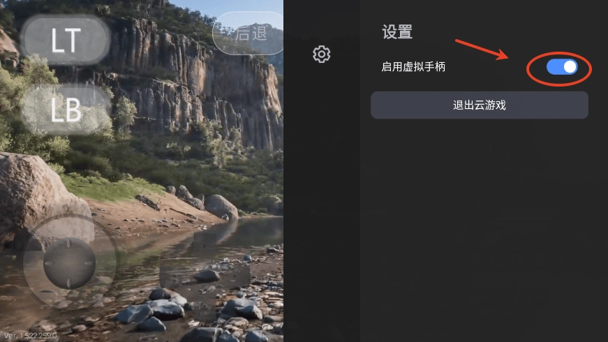點擊返回鍵,出現設置界面,點擊“啟用虛擬手柄”;