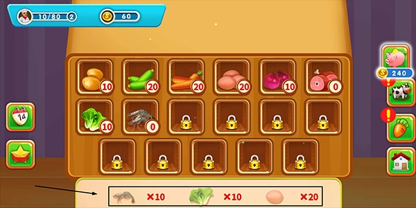 游戲采用卡通趣味的畫風,你的農場得儲備更多農作物種子才行,而且不少美食都得用上特定的材料呢。