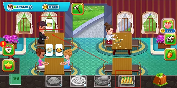 制作完成后,將做好的料理拖動給顧客,就能獲得金幣,這些金幣可用于購買種子以及升級家禽。