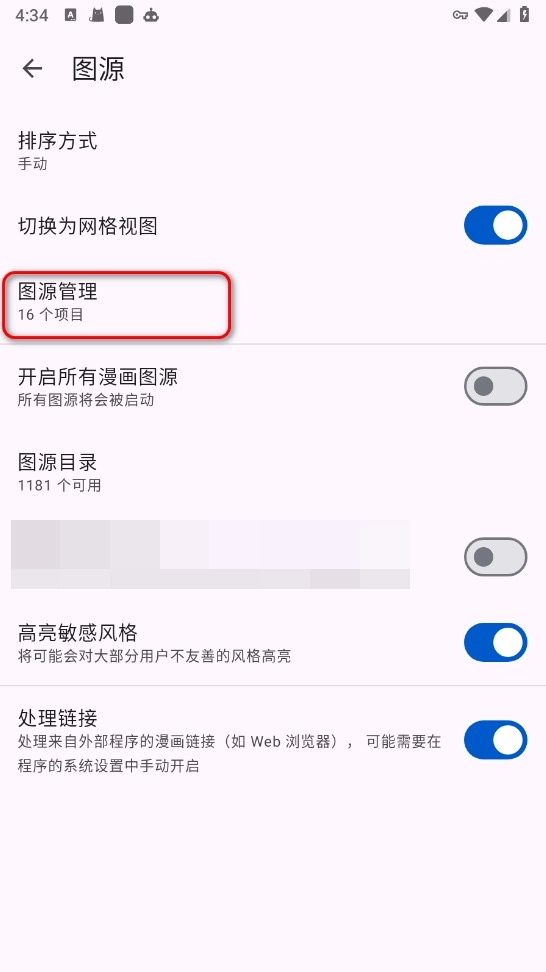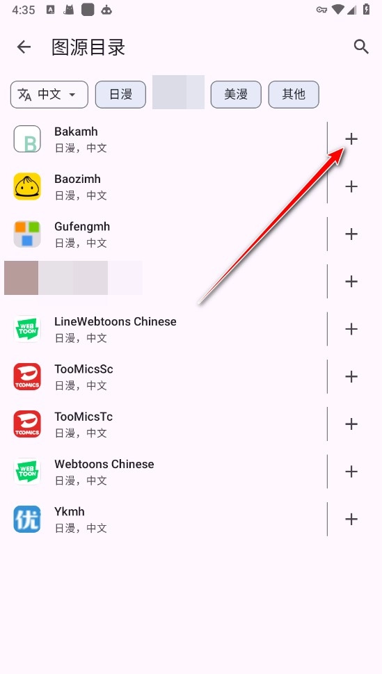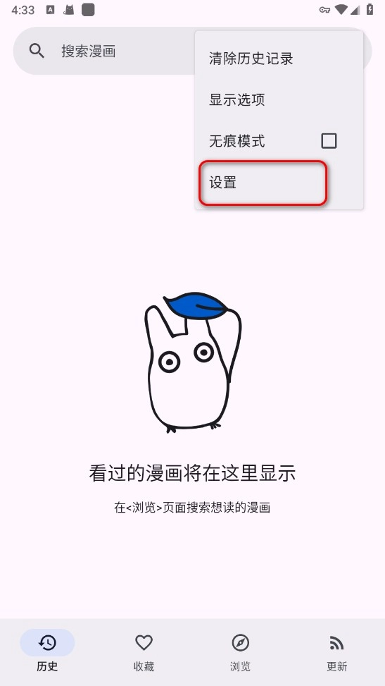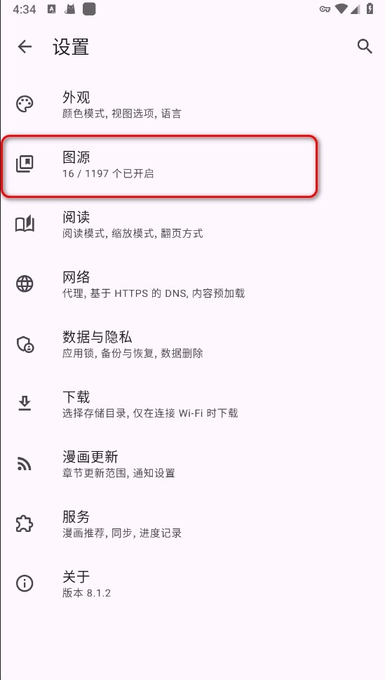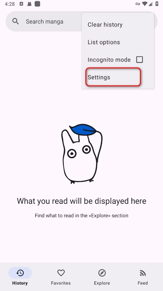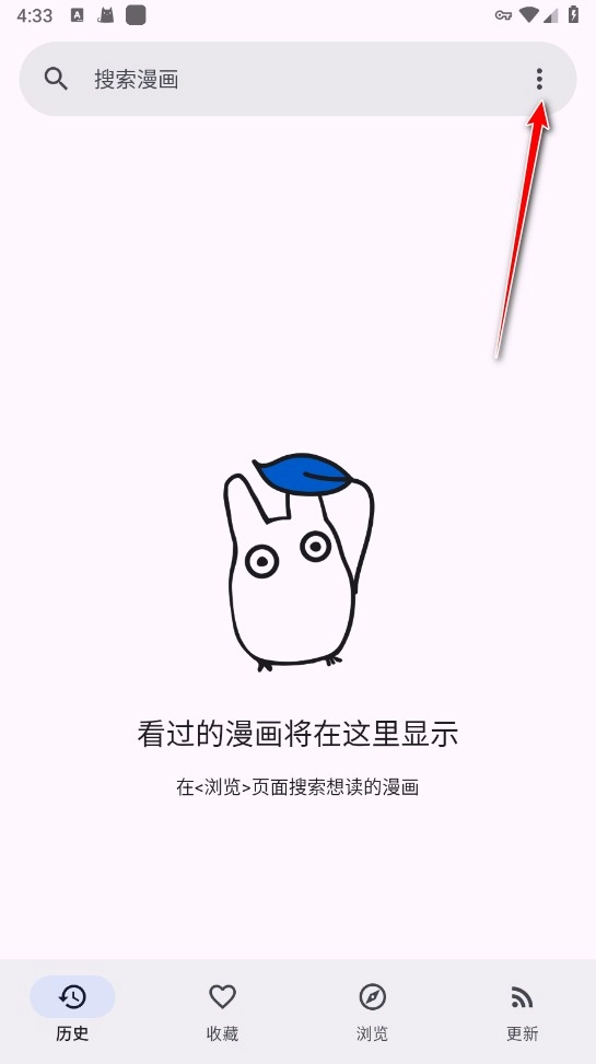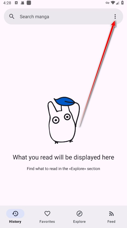 打開Kotatsu漫畫閱讀器,點擊搜索框旁的三個點