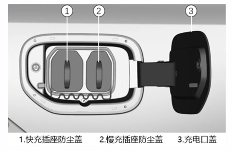 按壓充電口蓋使其彈開,拔出慢充插座防塵蓋。