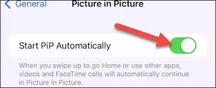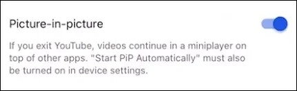 7.如果您想仔細檢查以確保啟用或關閉畫中畫,您可以在 YouTube 設置中的“常規”>“畫中畫”下執行此操作,然后將其打開或關閉