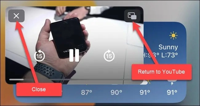 6.可以在屏幕上移動迷你播放器,點擊“X”將其關閉,或返回 YouTube 應用中的視頻