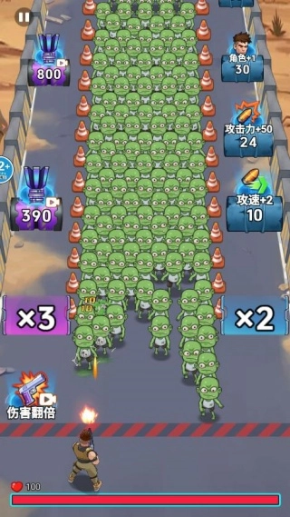 子彈無限射擊是一款以末日廢土為背景的肉鴿射擊游戲。它采用自動射擊機(jī)制,玩家只需借助虛擬搖桿操控角色移動,一旦靠近敵人便會自動開火。游戲的技能系統(tǒng)支持隨機(jī)組合,技能池中包含火焰噴射、雷電暴擊、冰凍控制等多樣效果,玩家能自行搭配出爆炸連鎖、彈射射擊等強(qiáng)力組合。此外,游戲還提供了豐富的武器選擇,像火箭筒這類具備爆炸性傷害的武器,能夠瞬間消滅一群僵尸。