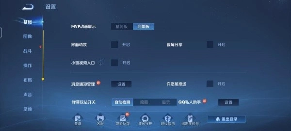 點擊后會進入設置界面,在該界面中能夠對游戲里的細節進行調整,還可以滑動左側的功能欄。