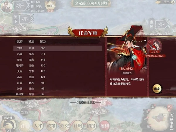軍師所提建議的準確率,與武將自身的智力水平存在關聯;而結盟行動以及登庸武將的成功率,則和武將的魅力值相關。