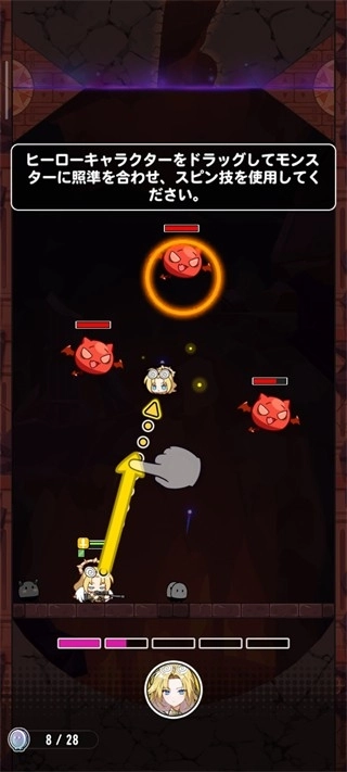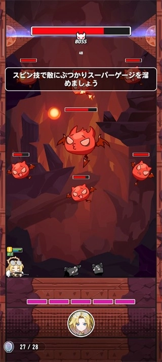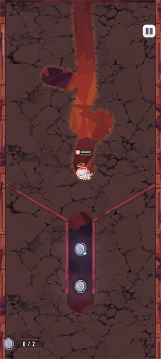 在下滑過程中會碰到一些小怪,我們得滑動角色來攻擊它們,屏幕下方顯示的是能量條。