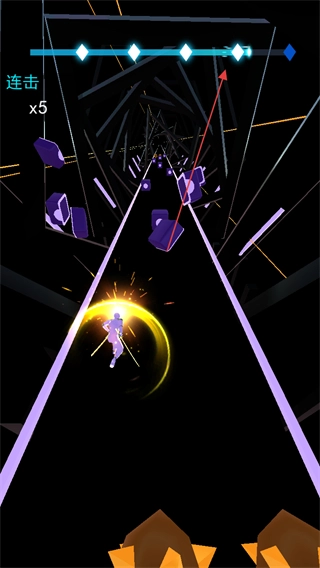 賽道里會隨機生成加速、變向之類的特殊機制,搭配著節奏不斷變化的方塊,需要玩家在維持節拍感的同時迅速調整操作,這十分考驗手眼協調能力。