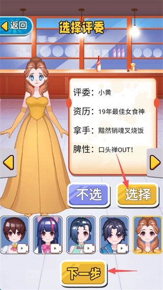 先挑選評委,挑選完成后,點擊屏幕右側的“選擇”按鈕,接著再點擊屏幕上的“下一步”按鈕。